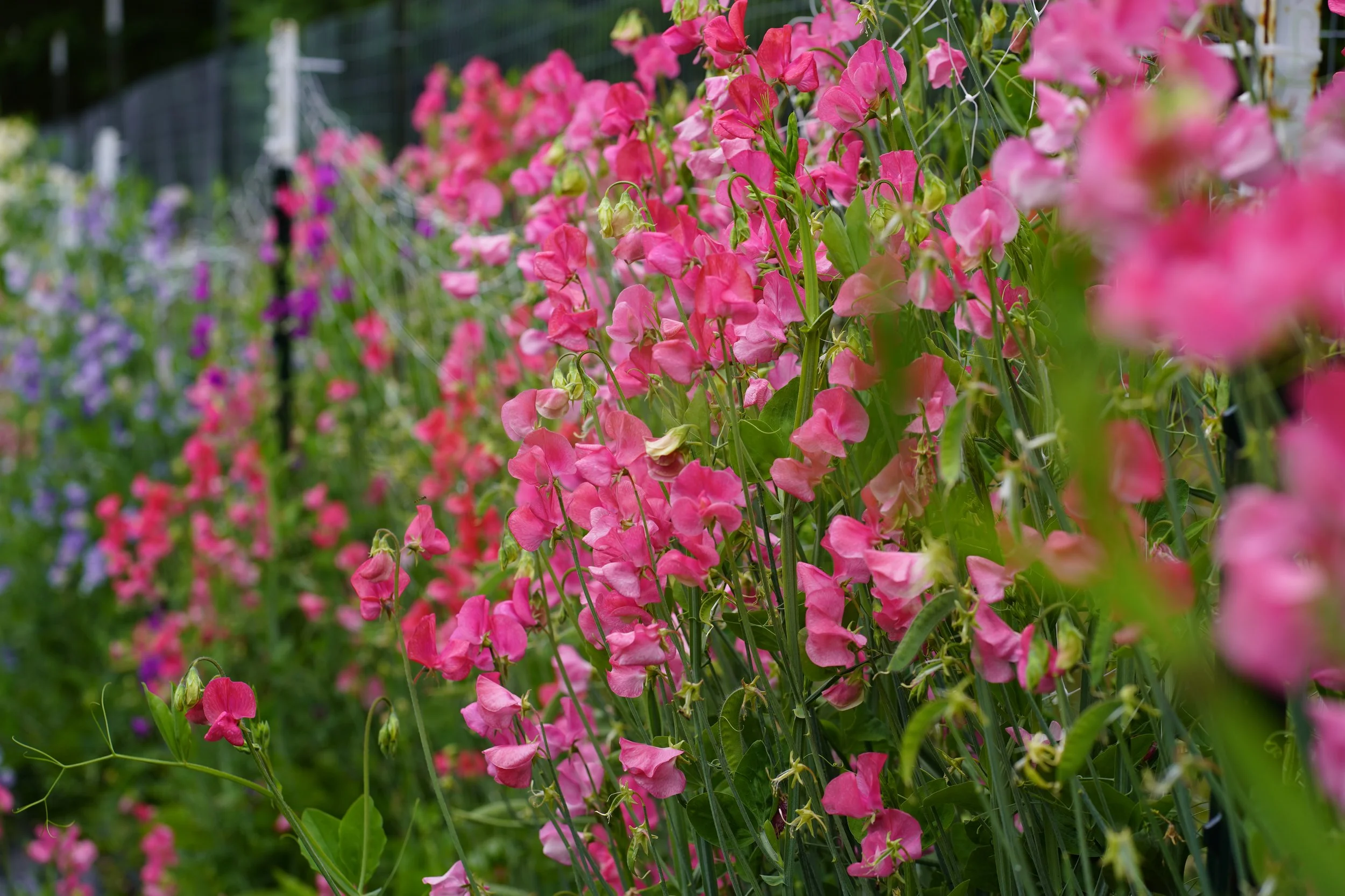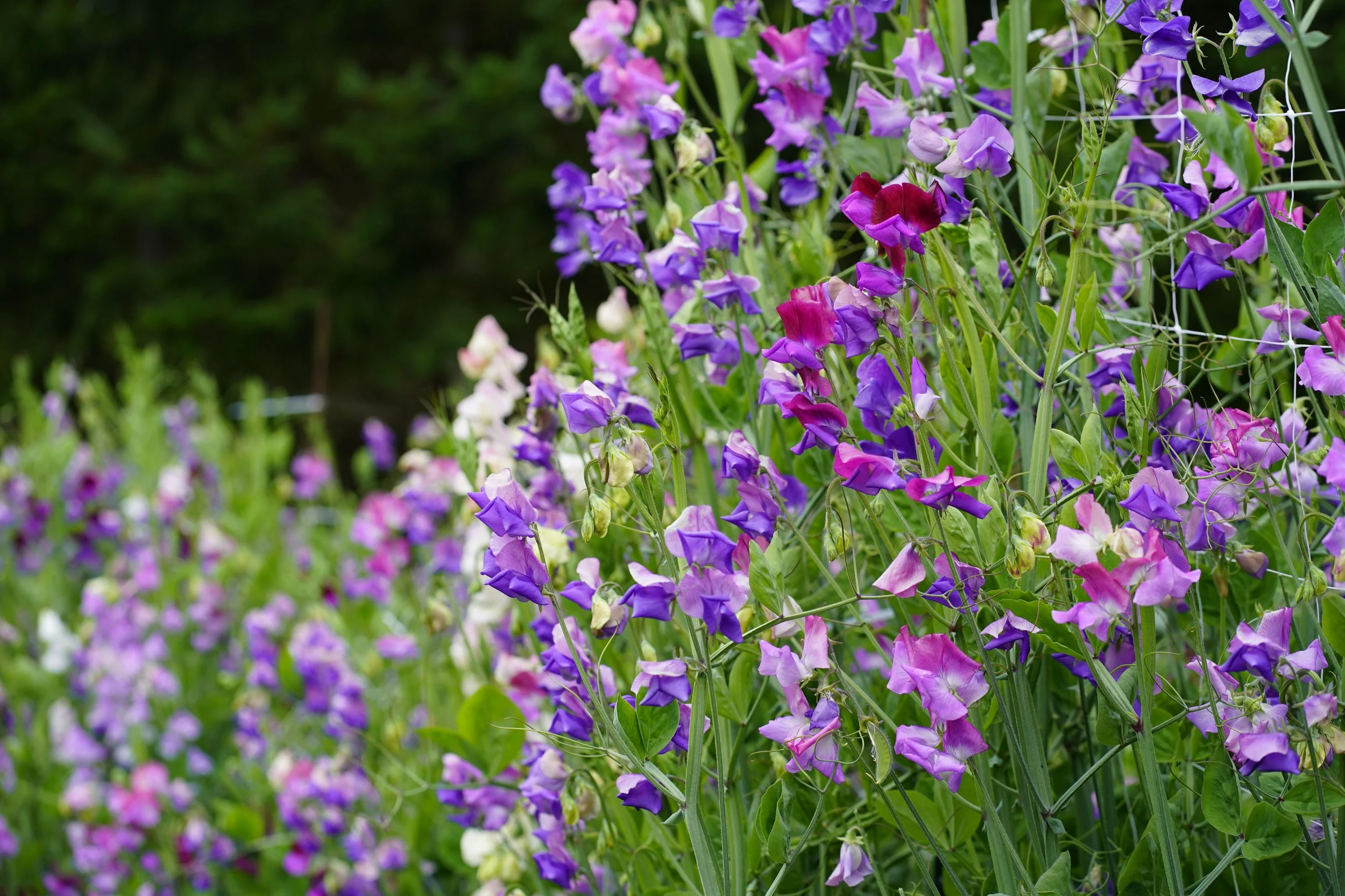 Sweet Peas will grow at one foot per week, use twine to tie them to the trellis for support and long stems.